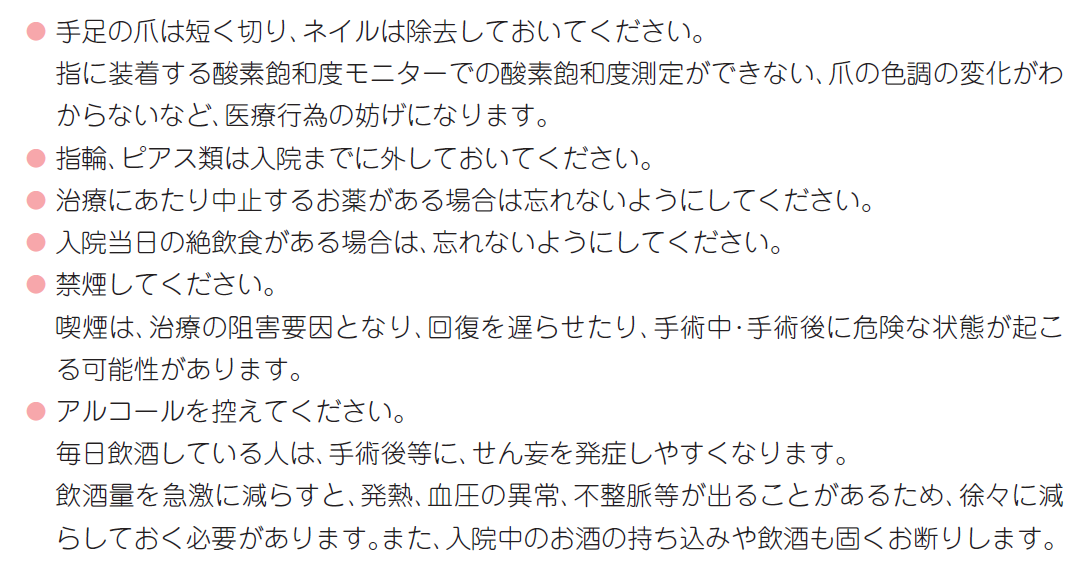 入院中に守っていただきたいこと