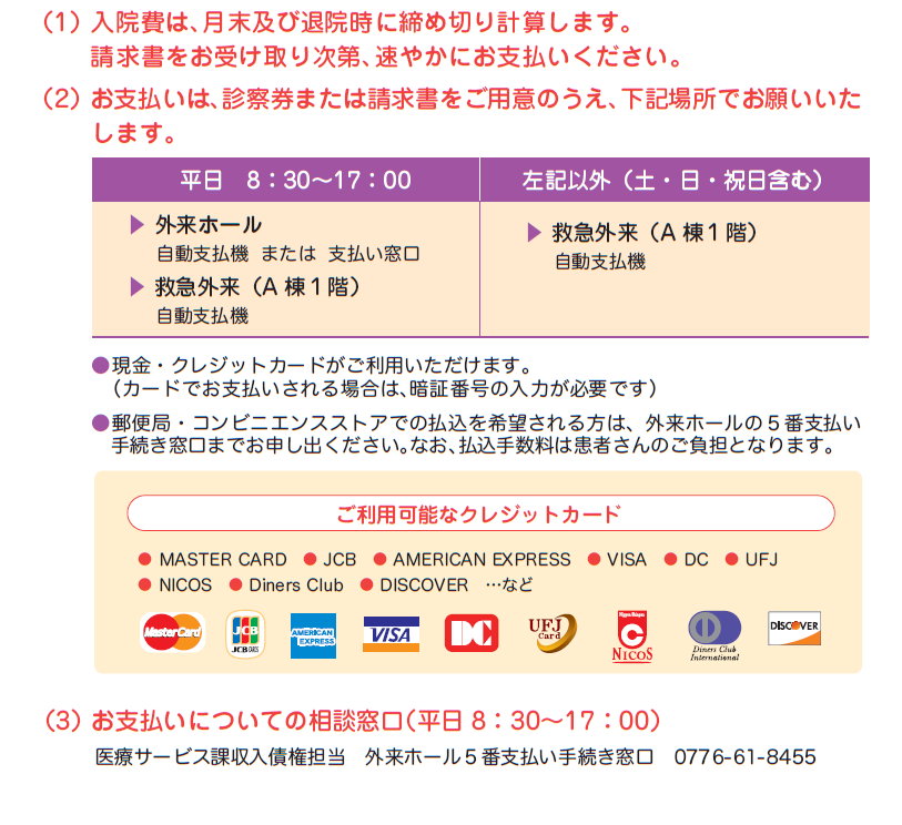 入院費の支払いについて