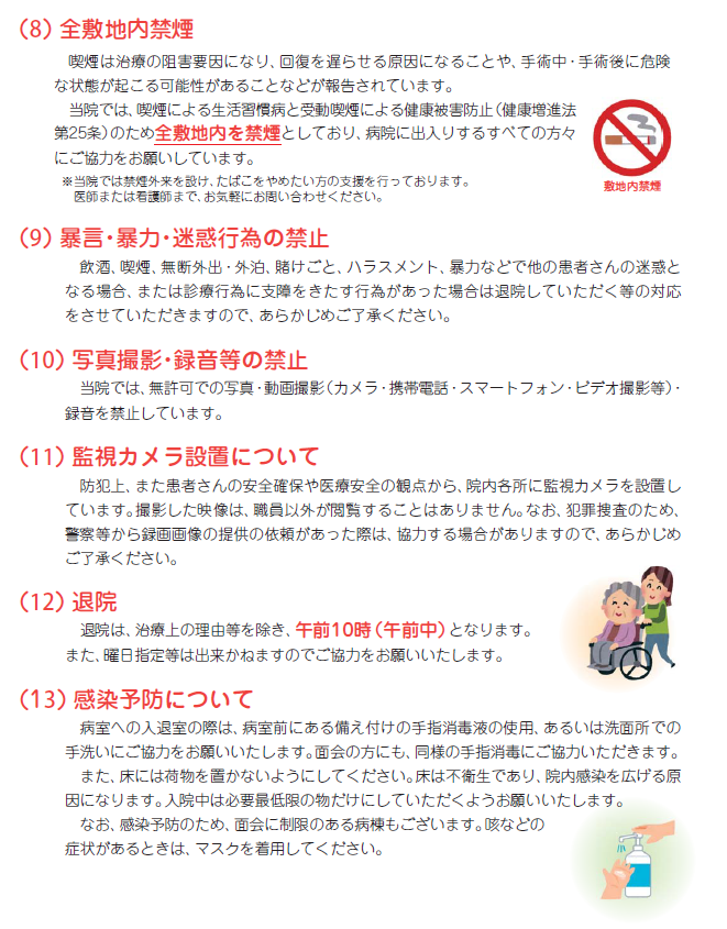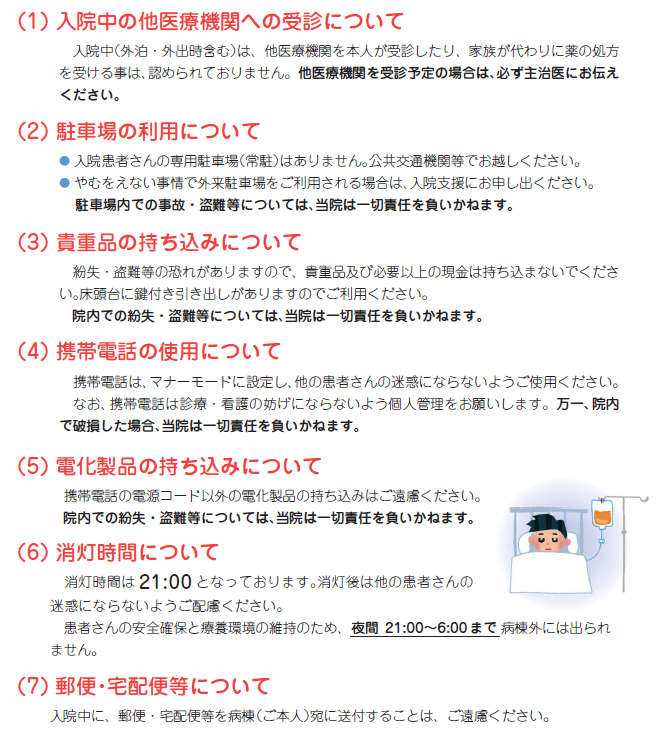 入院中に守っていただきたいこと